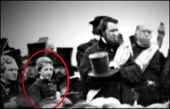 앤드류는 ‘점프룸’을 통해서 100년전 과거의 세계에도 갔다왔다고 하는데, 그 사진은 1863년 링컨이 게티즈버그에서 연설하는 사진인데, 그 사진속에서 링컨대통령 바로 옆에 서있는 소년이 바로 앤드류라는 것이다.